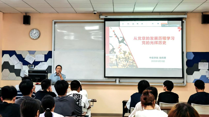 10月15日,中医学院入党申请人培训班第二讲开讲。我院党委副书记陆佩丽应邀作“从党章的发展历程学习党的历史”专题辅导报告,引导全体学员通过党章演进脉络,深刻感悟党的百年奋斗历程,汲取砥砺前行的智慧和力量。