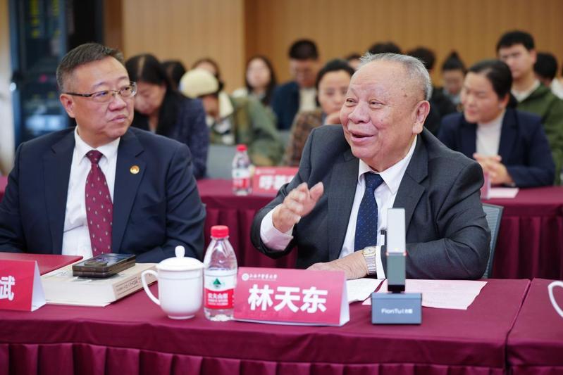 周斌代表学校党委对林天东国医大师在上海中医药大学设立传承工作室致以最崇高的敬意和感谢。他表示,学校将为工作室做好服务保障,希望中医学院、协同创新中心与工作室团队紧密协作,为工作工作室开展提供有力保障,在林天东国医大师的帮助下,工作室成为中医药传承精华的“蓄水池”、守正创新的“试验田”、人才培养的“孵化器”。传承弟子代表洪燕龙发言表示,恩师数十年深耕中医药领域,以仁心仁术济世救人,用严谨治学态度传承国粹,是后辈行医治学的标杆。工作室的成立为中医药传承搭建了重要平台,作为弟子,将始终恪守师训,以创新思维赋能传统医学,钻研经典医籍,深耕临床,凝心聚力推动中医药薪火相传、守正创新,为中医药事业高质量发展贡献力量。