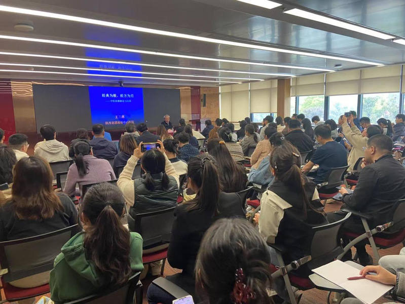 为深入挖掘中医经典智慧,传承弘扬经方临床精髓,引导广大师生精研中医经典理论、筑牢经典临证基础,全面提升肿瘤疾病中医辨治能力,受上海中医药大学中医学院邀请,2026年4月21日下午,陕西及广西名中医、国内知名中医肿瘤专家王三虎教授莅临我校,为师生作题为“经典为根 经方为刃——王三虎抗癌临证新论与实战应用”的专题学术讲座。本次讲座受到校内外广泛关注,吸引近两百名师生到场聆听,会场座无虚席,学术氛围浓厚。