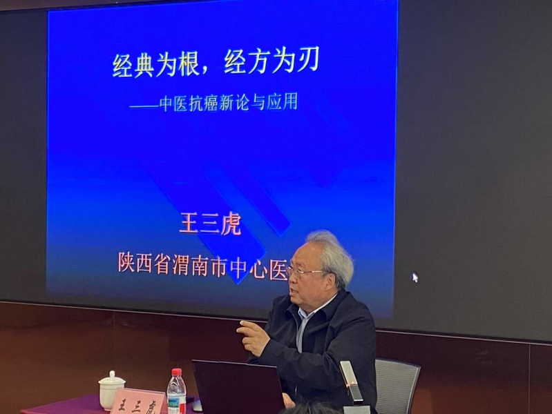 讲座中,王三虎教授深耕中医经典古籍,融汇四十余年临床诊疗与科研探索的深厚积淀,以经典理论为溯源之本,系统阐释其“燥湿相混致癌论”“风邪入里成瘤说”等兼具经典底蕴与创新价值的原创学术思想,实现了中医经典理论与现代肿瘤临床的深度融通。他紧扣“以经解病、以方施治”的核心原则,结合肺癌、胰腺癌等多种临床典型病例,深入浅出地拆解中医经典要义,生动展现了精准活用经方、灵活化裁古方以破解复杂肿瘤病症的临证思路与实战技法,并着重强调:中医抗癌诊疗唯有坚守经典本源、汲取经方精华,方能在守正创新中传承古法、突破临床瓶颈,切实提升肿瘤中医诊疗的实效。